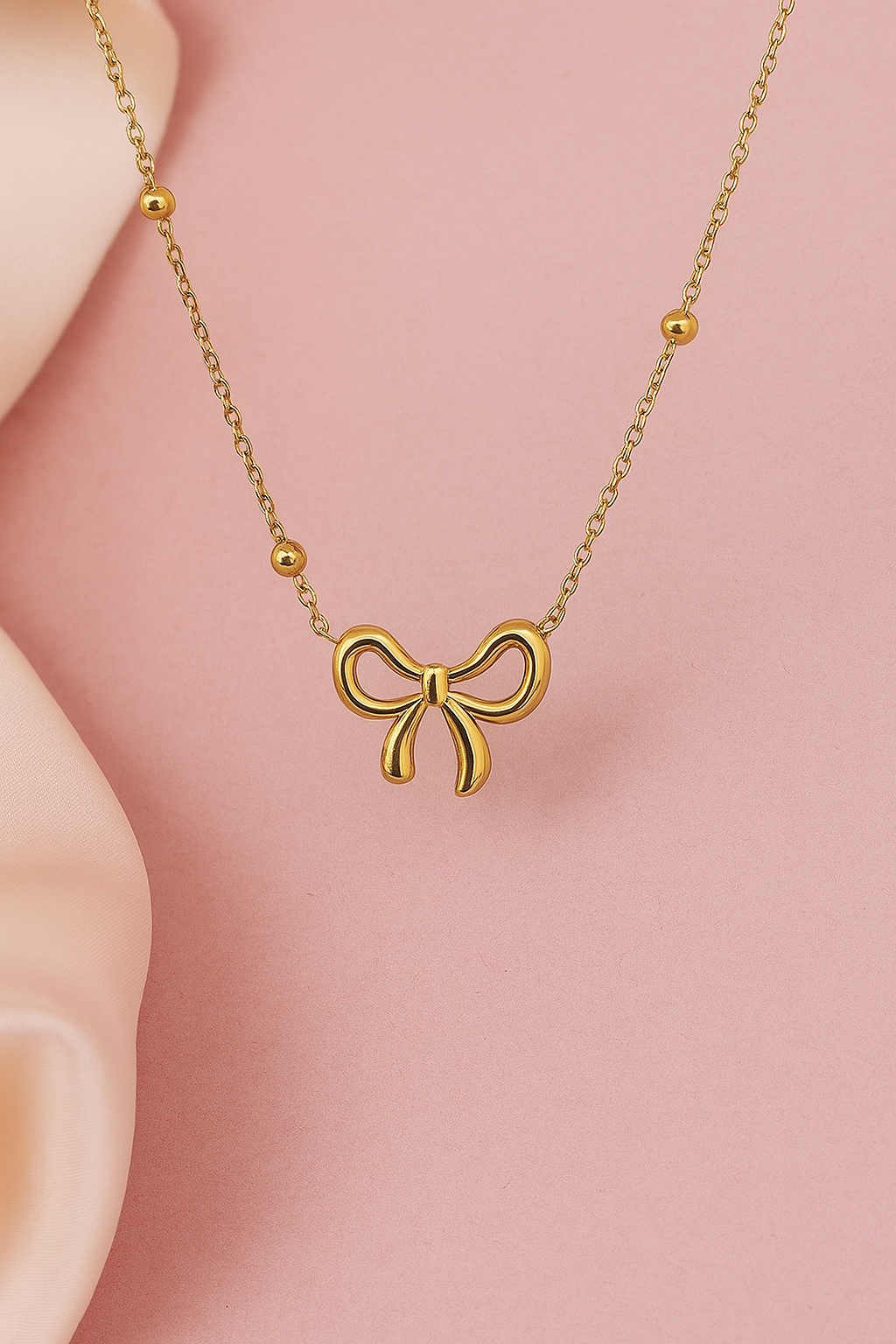 Elegant and timeless, this Stainless Steel Bow-Knot Necklace features a delicate gold-plated pendant symbolizing grace and charm. With its anti-tarnish, waterproof, and hypoallergenic design, it’s perfect for everyday wear or special occasions.