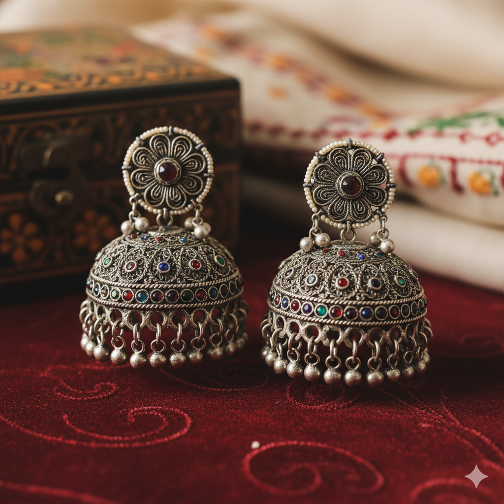 Add a touch of traditional elegance to your look with our Oxidized Jhumkas, beautifully crafted for lovers of ethnic style. These earrings feature intricate detailing inspired by classic Indian craftsmanship, giving them a rich, heritage-inspired appeal.